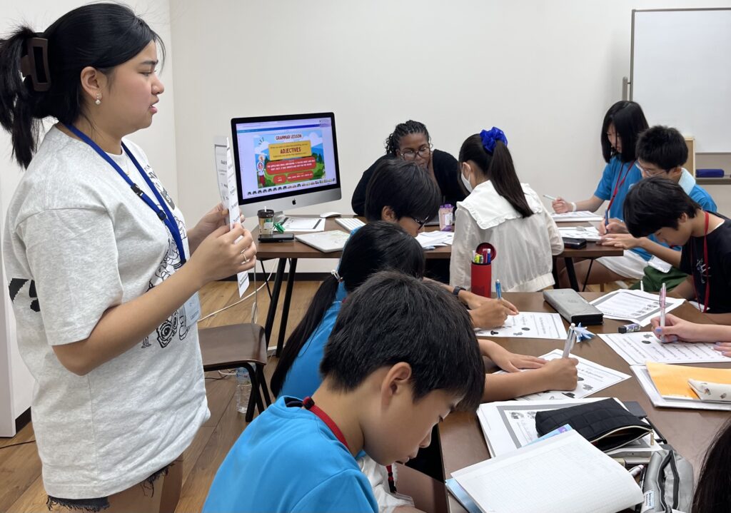初級の子どもたちがハーバード生と学ぶと英語が楽しい!How to make English learning fun for children 2025.08.09 今日のLA1(初級)は「説明文」と「描写文」の復習から始まり、形容詞と副詞の文法も学びました。次に「接続詞」を、楽しいディベート形式で導入したあと本格的に勉強、「説得文」と「物語文」に入りました。最後はテーマを選んで物語を書いて、最終プロジェクトの準備を始めました。Laurinne LA1