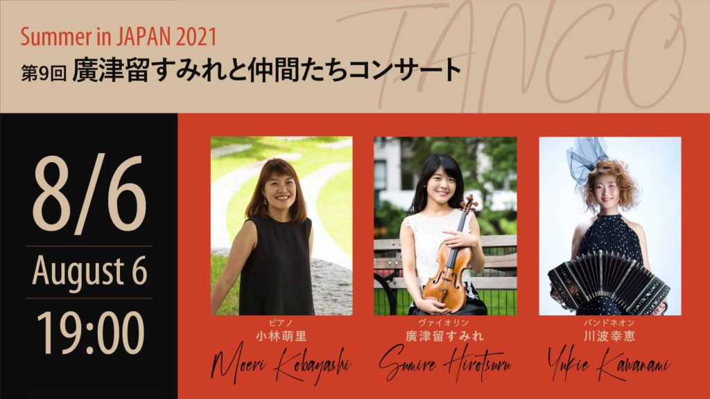 | 出演者 | バイオリン:廣津留すみれ ピアノ:小林萌里 バンドネオン:川波幸恵 |