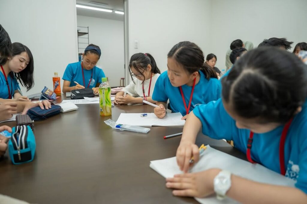 On Day 1, 105 students from 3rd year elementary through to 3rd year junior high across Oita, ranging from complete beginners to those who have passed Eiken Grade 2, came together to create their own English speech drafts. Working with 13 English instructors, including international violinist Sumire Hirotsuru, the students enjoyed a high-energy 90-minute session where they took their first steps in public speaking.